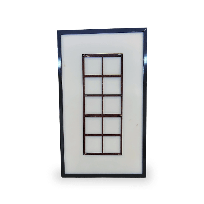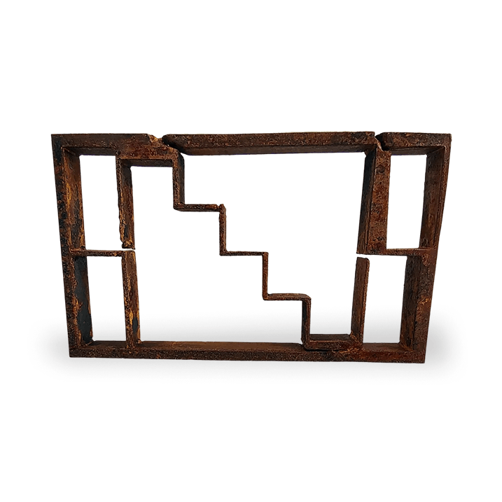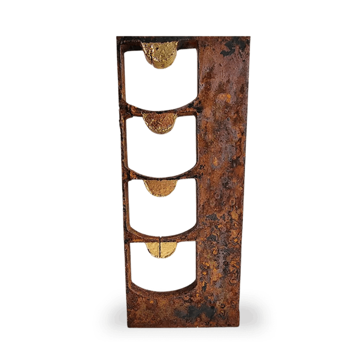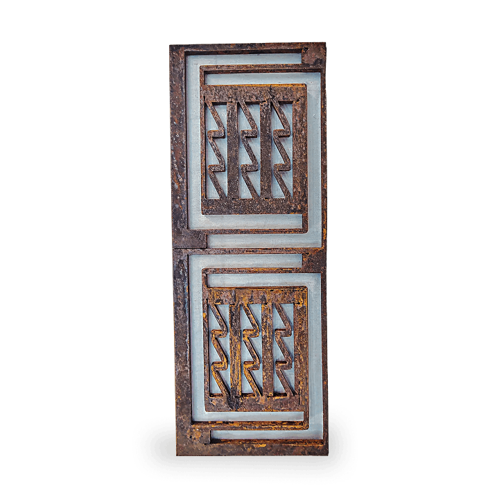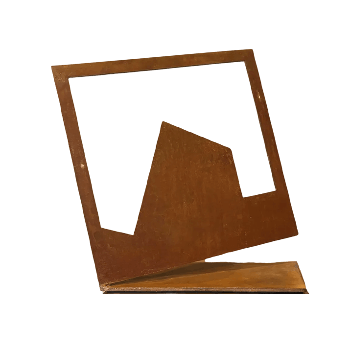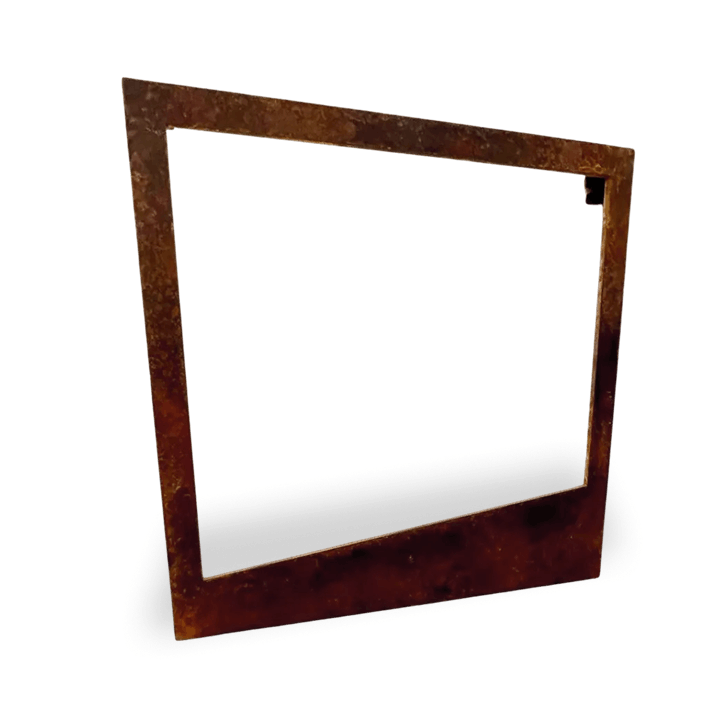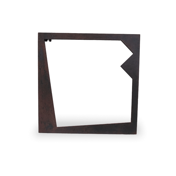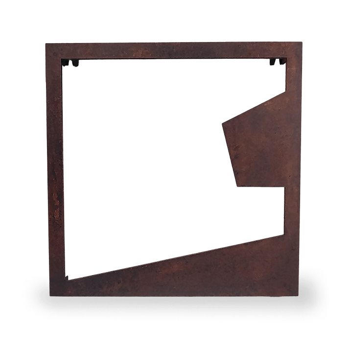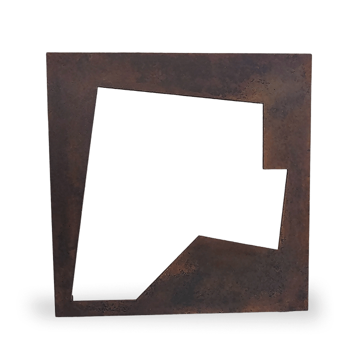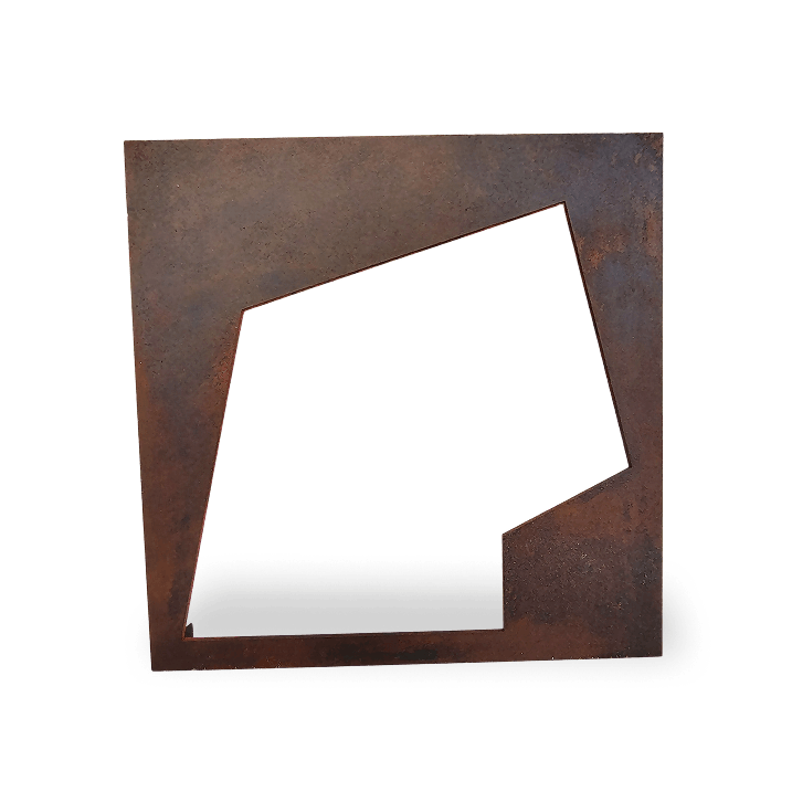 Placa de acero de 1/4" intemperizada con acabado en cera de carnauba.