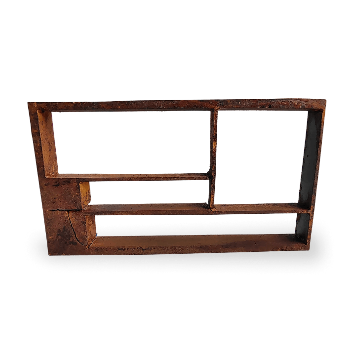 Placa de 1/4" sobre cartón y MDF, 82 x 48 cm, intemperizado / cera de carnauba.